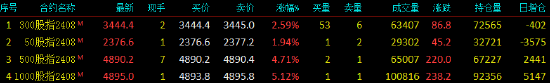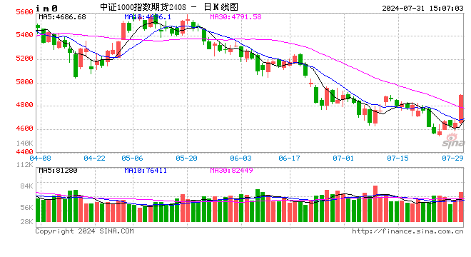 2024年7月31日,股指期货全线上涨,沪深300股指期货(IF)主力合约涨2.59%,上证50股指期货(IH)主力合约涨1.94%,中证500股指期货(IC)主力合约涨4.71%,中证1000股指期货(IM)主力合约涨5.12%。
