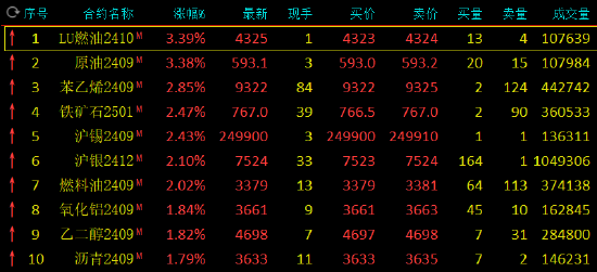 期货收评:SC原油、LU燃油涨超3%,沪锡、沪银、燃油涨超2%,氧化铝沪镍涨近2%,碳酸锂跌集运欧线跌2%