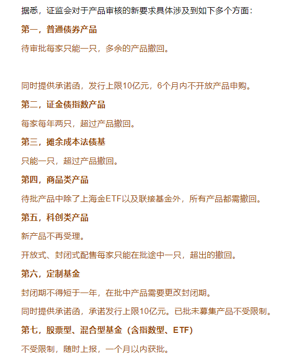 2019年10月,多家公募基金先后收到证监会窗口指导,总体是要求限制固收类产品上报数量,鼓励权益基金发展。