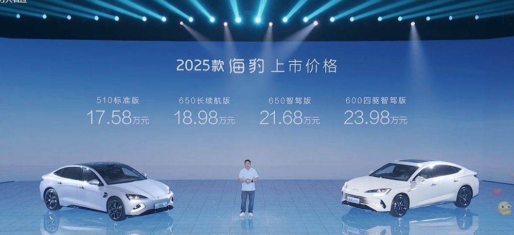 据悉,2025款海豹四款配置车型售价为17.58万元―23.98万元。海豹07DM-i五款配置车型售价为13.98万元―19.58万元。
