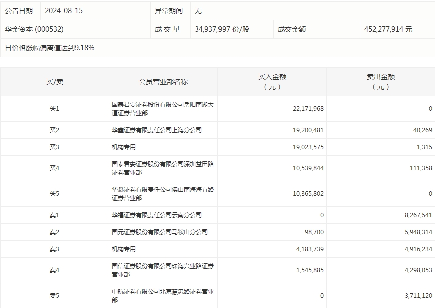 华金资本今天涨停。盘后数据显示,2家机构出现在龙虎榜单上,合计净买入1828.98万元;华鑫证券有限责任公司上海分公司买入1920.05万元,同时卖出4.03万元;国泰君安(601211)证券股份有限公司深圳益田路证券营业部买入1053.98万元,同时卖出11.14万元。