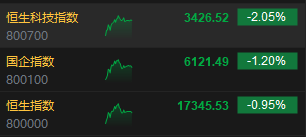港股上午盘三大指数再度呈现高开低走行情,恒生指数跌1.21%险守25000点关口,国企指数、恒生科技指数分别下跌1.41%及1.66%,盘中均创下月内...
