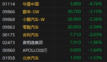 汽车股纷纷走低,蔚来跌超3%。消息方面,欧盟委员会披露了对从中国进口的纯电动汽车征收最终反补贴税的决定草案,对拟议税率进行小幅调整:比亚迪(002594)17.0%,吉利19.3%,上汽集团(600104)36.3%。此外特斯拉作为中国出口商实施单独关税税率,现阶段定为9%。