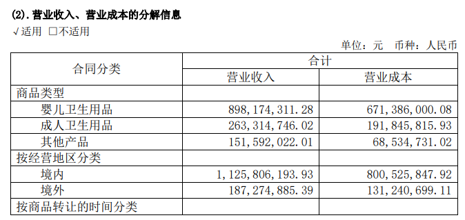 通过分产品销售额来看,造成豪悦护理营收下降的主要原因或在于营收占比最高的婴幼儿产品销售额出现下滑,2024年上半年婴儿卫生用品收入8.98亿元,同比下降9.88%。