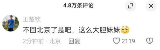 在社交媒体上,跳水运动员全红婵分享了一张乒乓球运动员王楚钦睡觉的照片,并配上了调侃的文字。这一轻松幽默的动态很快引起了网友的兴趣和讨论。王楚钦在看到这条动态后,并没有选择沉默,而是以一种幽默的方式转发了这条动态,并评论道:“不回北京了是吧,这么大胆妹妹”。