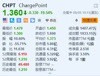 美股异动丨ChargePoint跌超19.5% 第二财季营收逊预期 公司宣布将重组业务