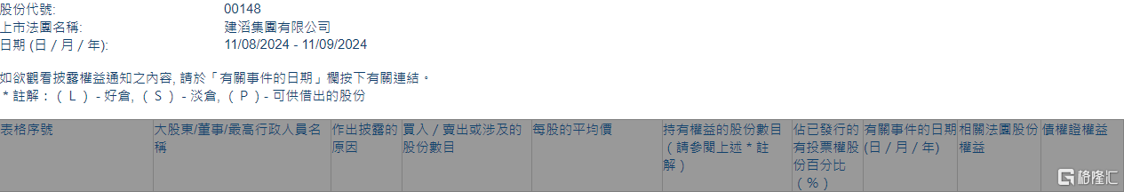 建滔集团(00148.HK)获执行董事兼主席张国荣增持6.3万股