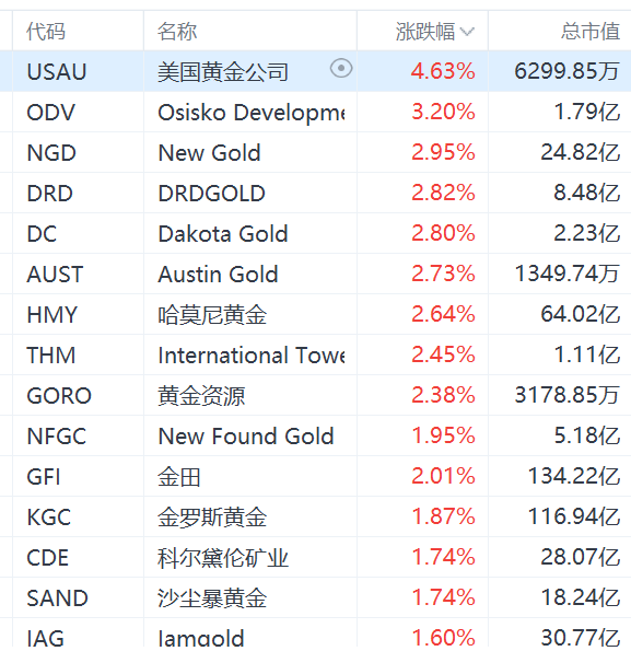 美股异动丨金价创新高,黄金股集体上涨,金田涨2%
