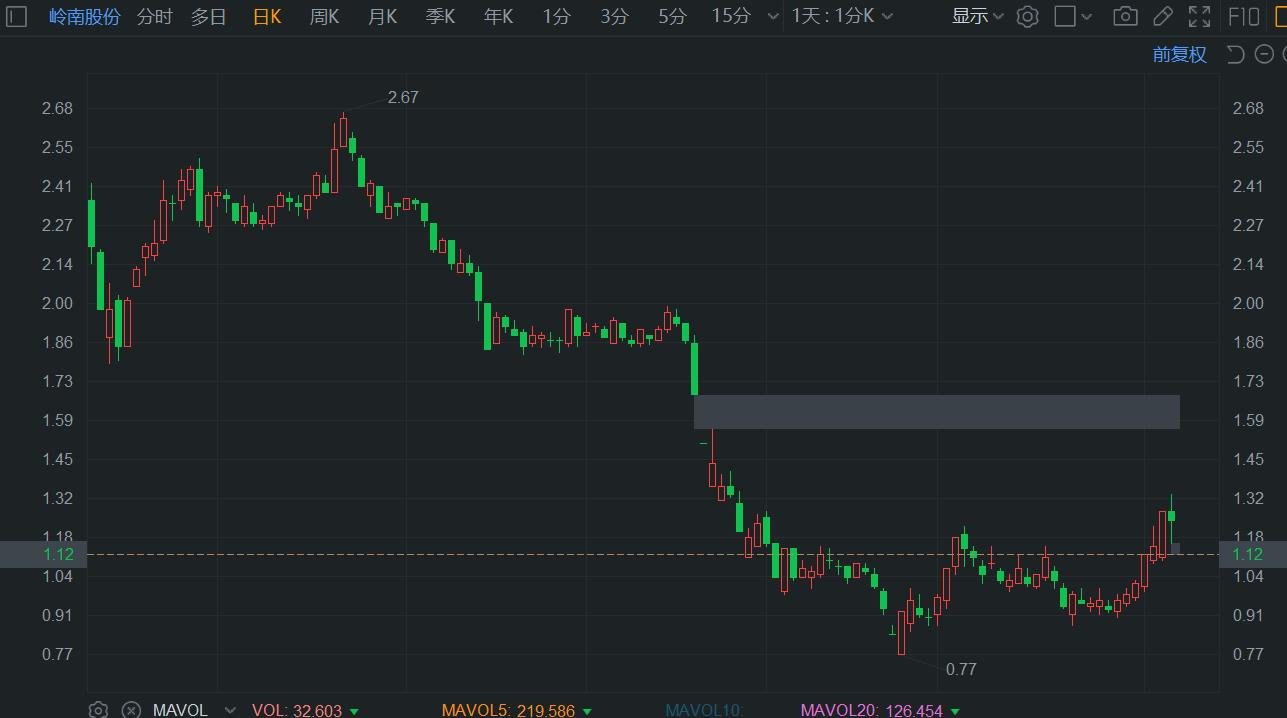 岭南股份(002717.SZ)今日开盘一字板跌停,目前封单超140万手,现报1.12元,总市值不足20亿元。公司昨日晚间公告,发行的“岭南转债”将于2024年8月14日到期,目前剩余金额为64.53亿元,公司现有货币资金无法覆盖本息,存在重大兑付风险。