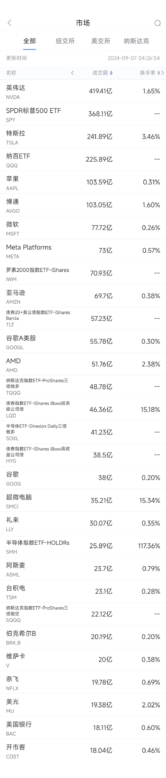 第9名AMD收跌3.65%,成交51.76亿美元。在IFA 2024活动上,AMD公司确认下一代掌机芯片被命名为Z2 Extreme,预计将于2025年初发布。但该公司并未提供任何有关Z2 Extreme芯片的硬件规格或性能信息,只提到了它正在与几个不同的合作伙伴合作进行新品开发。