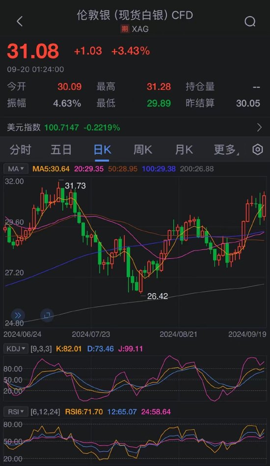 美元/日元、白银分析:美联储降息50个基点稳定美元,提振金属